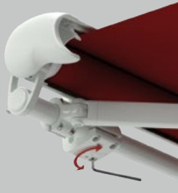 - Formschöne, ovale Gelenkarme mit einzigartiger Gasdruckfedertechnik sichern ein straffes Tuch in jeder Ausfahrphase