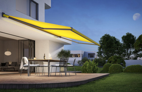 - Die in der Blende integrierbare Akzentbeleuchtung sorgt für eine stimmungsvolle Atmosphäre auf der Terrasse