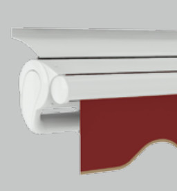 - Die spezielle tropfenförmige Tuchkassette umschließt auch bei ausgefahrener Markise die Tuchwelle und sorgt so für eine harmonische Optik