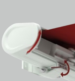 - Die Tuchblende in Kassettenfarbe, sorgt auch bei ausgefahrener Markise für eine geschlossene Optik